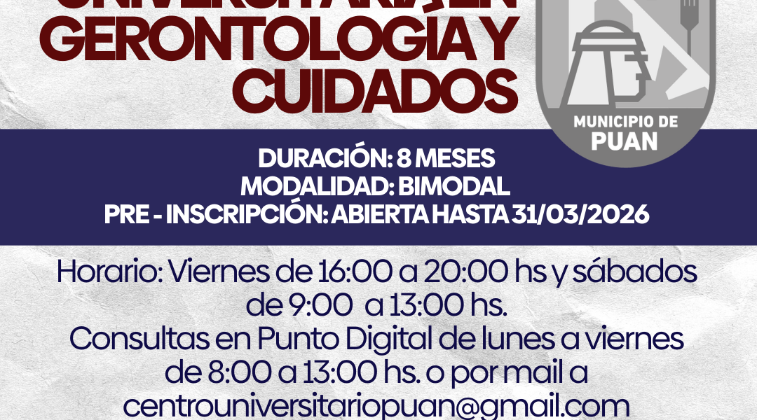 El Municipio de Puan informa que, a través del Programa Puentes, se suma una nueva propuesta de formación universitaria en el distrito: la Diplomatura Universitaria en Gerontología y Cuidados, dictada por la Universidad Nacional de Lanús (UNLa). Esta nueva instancia formativa busca brindar herramientas y conocimientos específicos para el abordaje integral de las personas mayores, promoviendo estrategias de acompañamiento y
