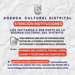 • Correo electrónico: agendaculturalpuan@gmail.com
