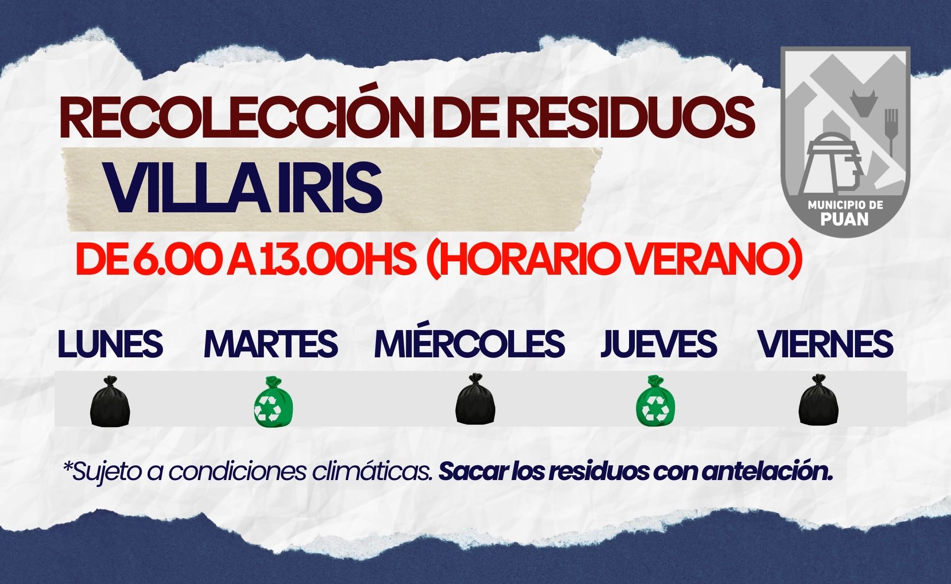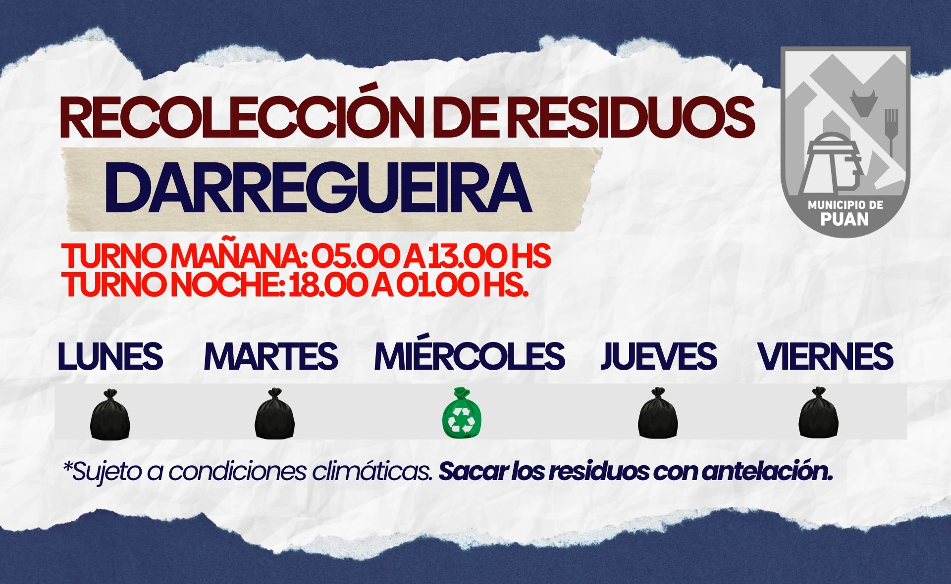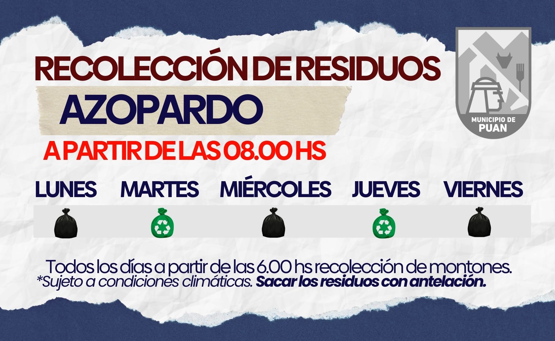 DIAS Y HORARIOS DE RECOLECCION