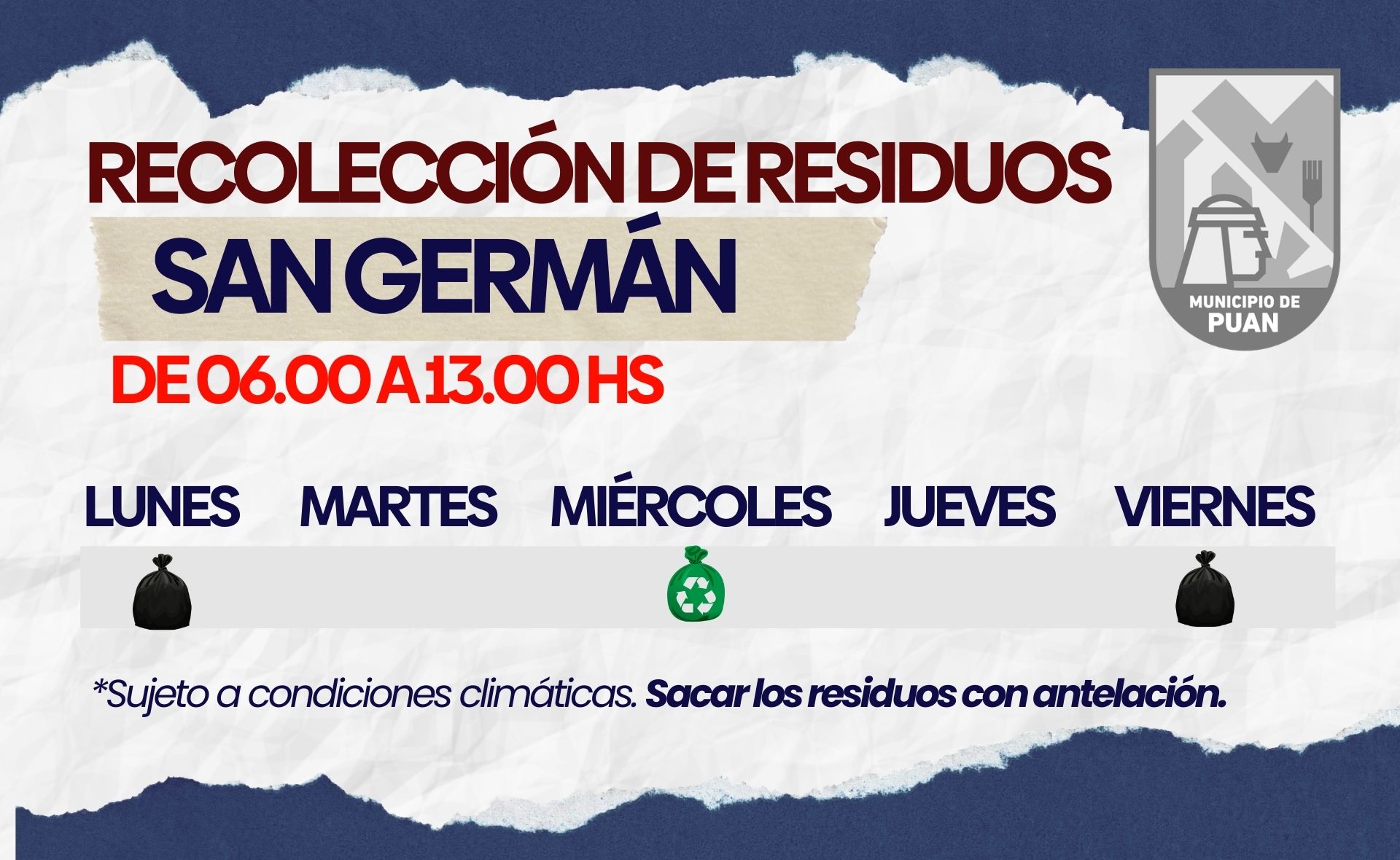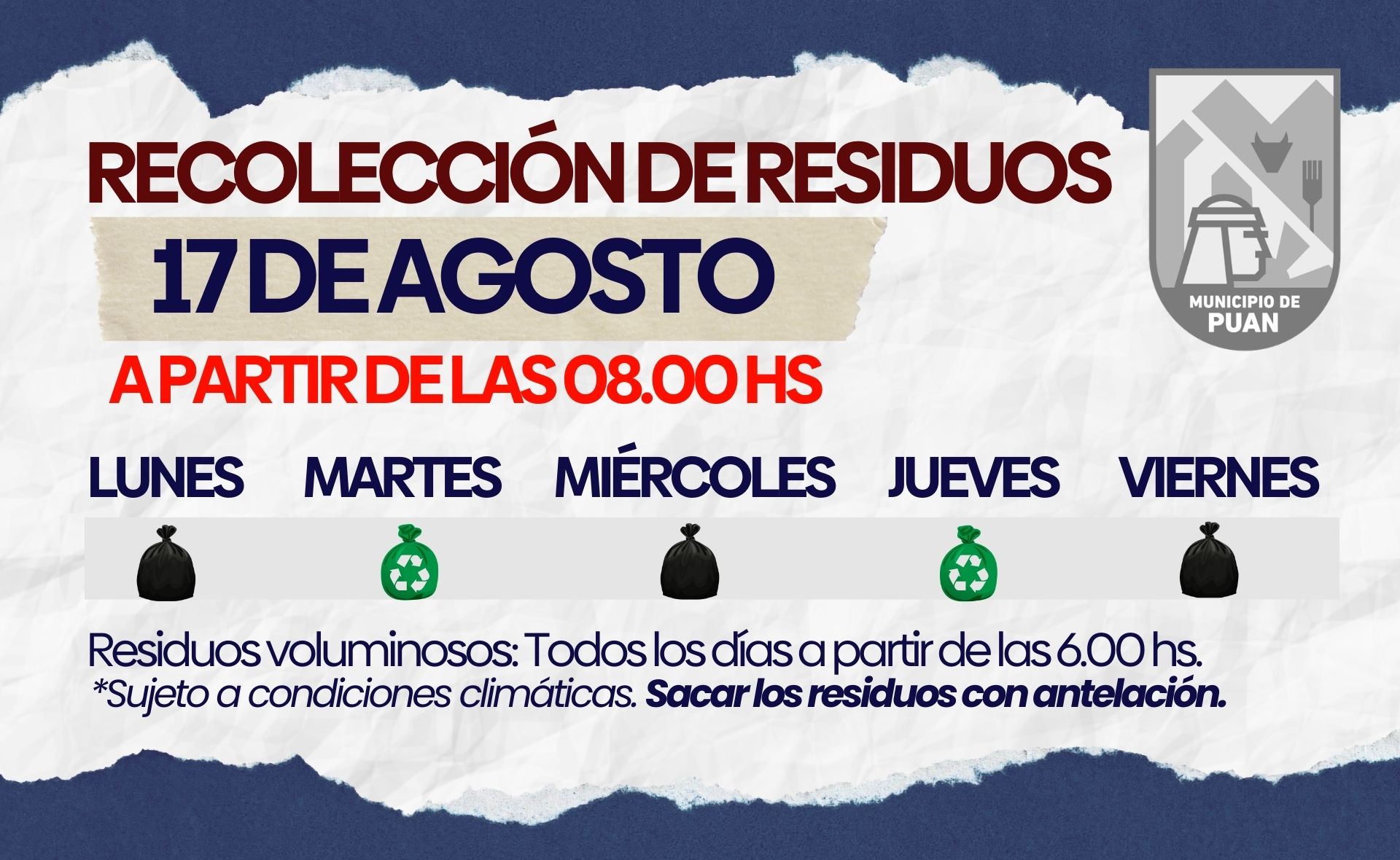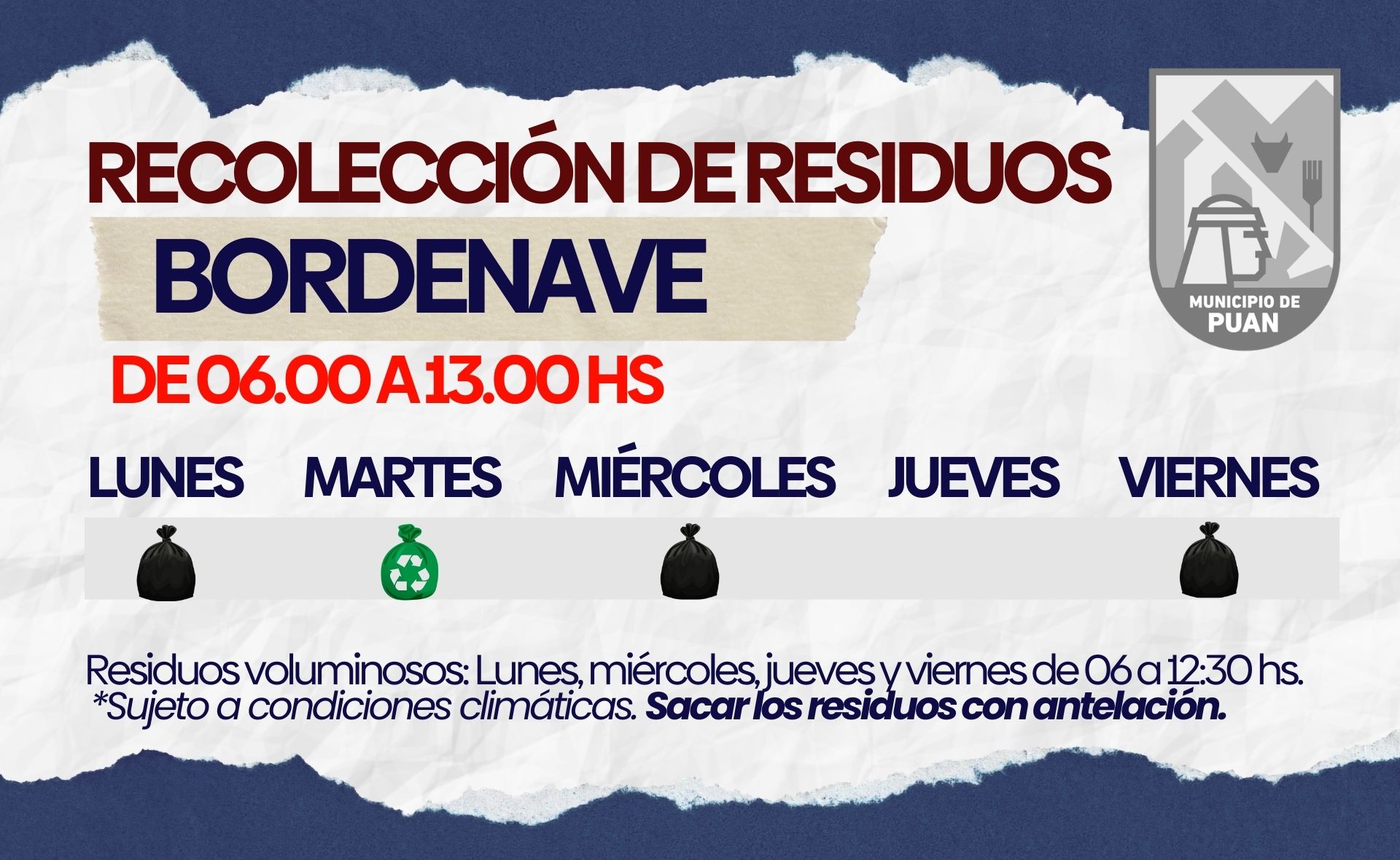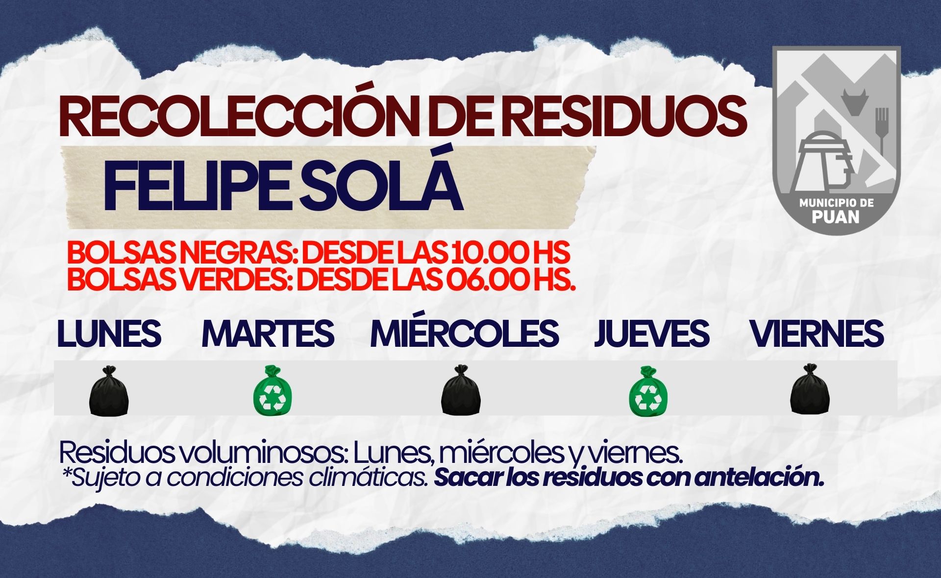 DIAS Y HORARIOS DE RECOLECCION